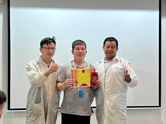 After the meeting, the host first introduced the content of the meeting, and led everyone to make a wonderful review of the activities carried out by TPM in the first phase and the results of TWI. Then entered the exciting awarding session. The leaders of the South China Factory presented awards to the three outstanding teams and took a group photo with the members of TWI's high-quality training documents.