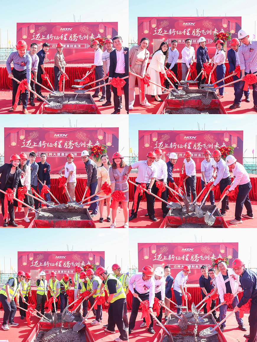 Leaders, the golden shovels opened together to complete the pouring of the last side of cement, MTN headquarters building was officially topped out, which also marks the company is about to usher in a new stage of development.