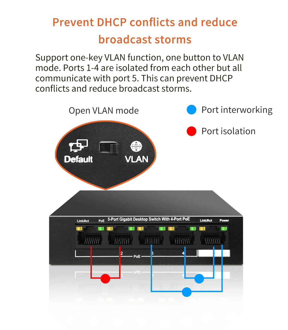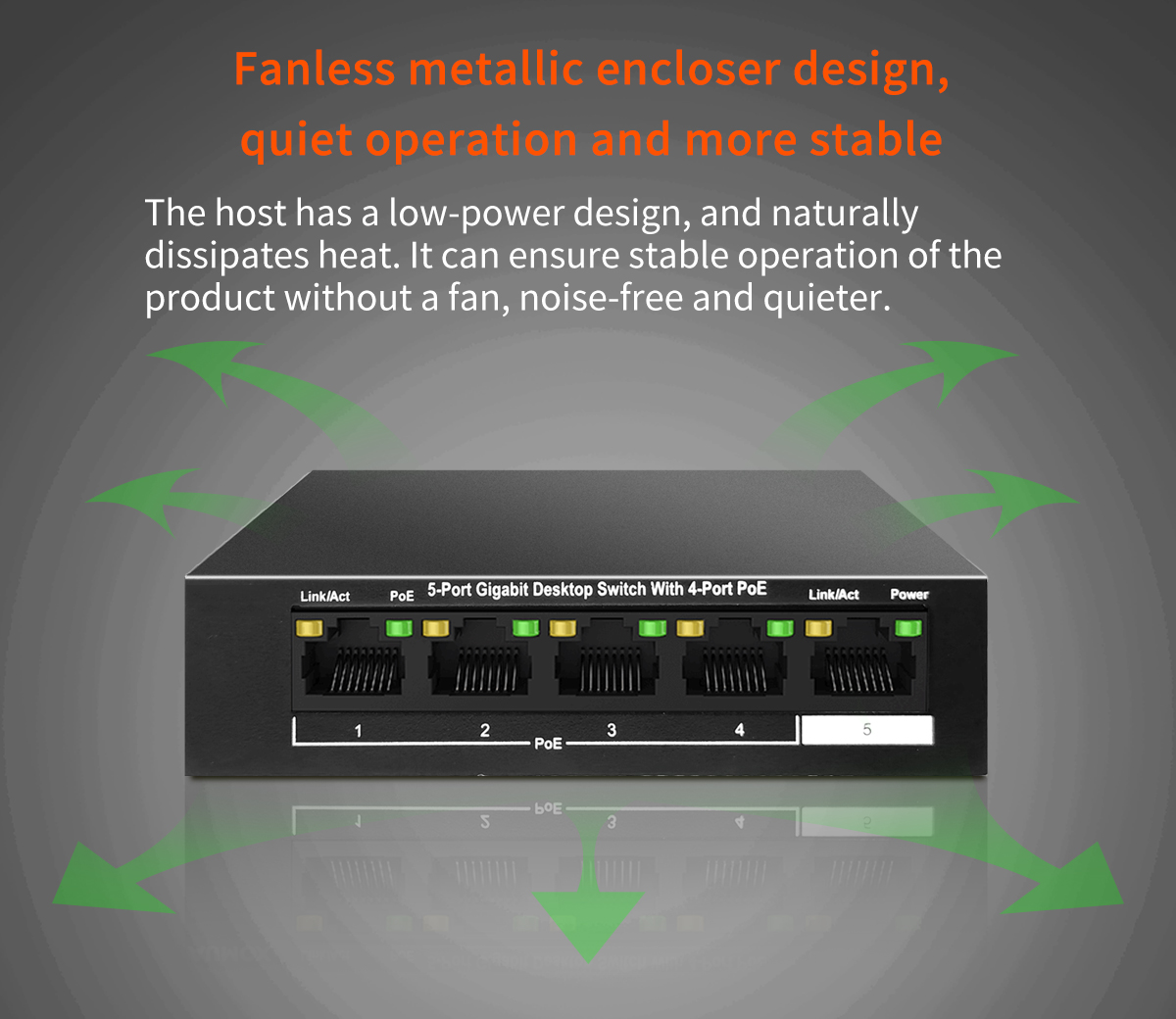 5 *10/100/1000Mbps adaptive Ethernet port, support Auto MDI/MDIX;